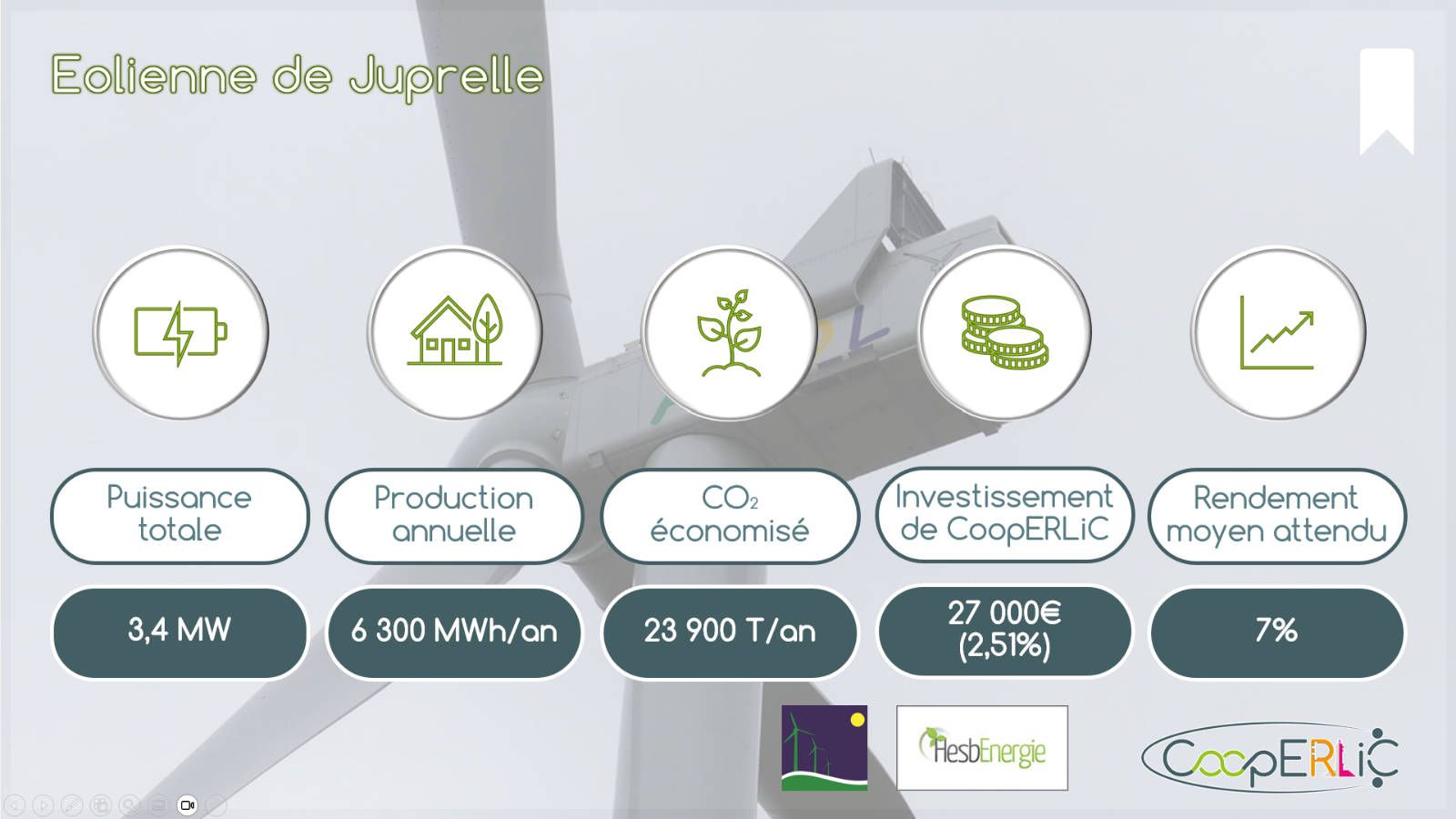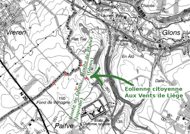 L’éolienne de Juprelle est un de nos premiers investissements. Afin de renforcer le démarrage de CoopERLiC, HesbEnergie nous a proposé de participer à leur projet. Cela fait l’objet d’un beau partage d’expertise. Merci à eux. L’éolienne se situe route de Glons à Juprelle.