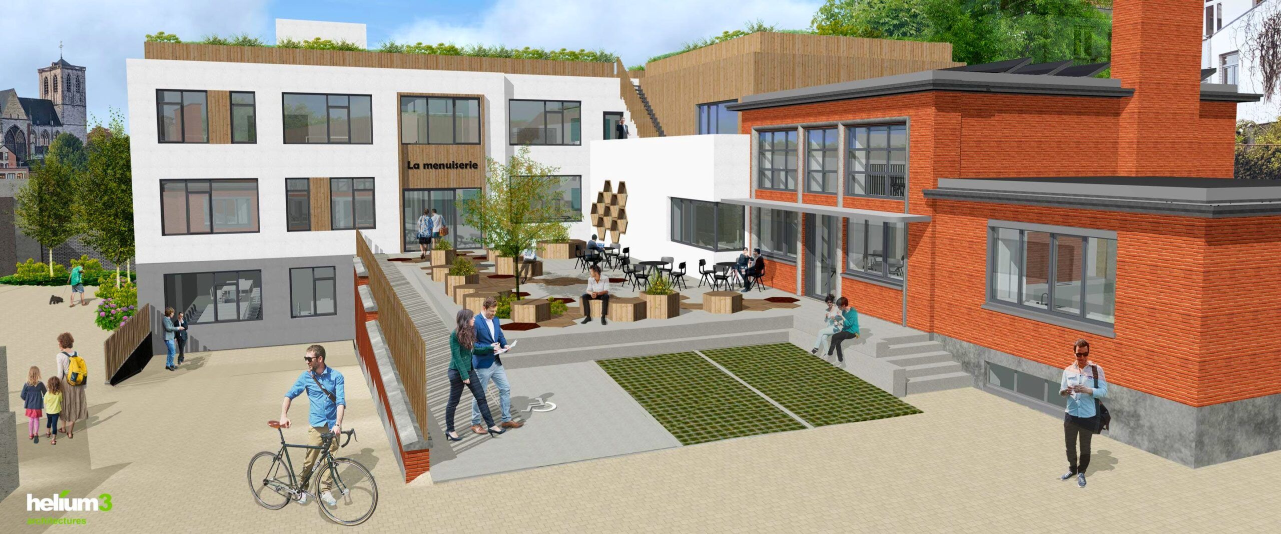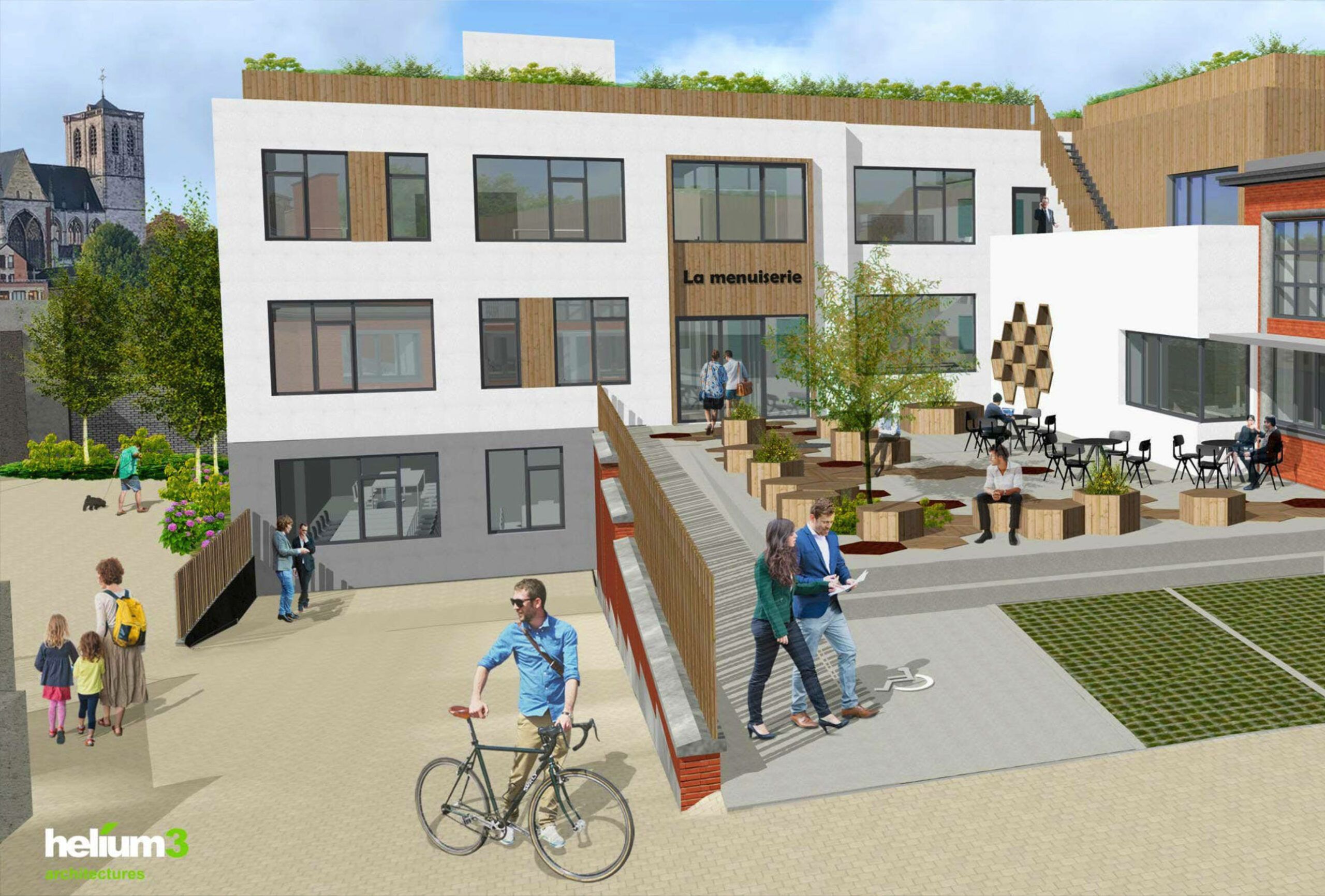 La Menuiserie, ancien bâtiment de la ville, est leur premier projet. Cet espace contient des bureaux, des salles de réunions, des espaces de coworking, une cuisine professionnelle de production dédiée à l’alimentation durable, accompagné de services mutualisés. Mais aussi des ESPACES OUVERTS AU PUBLIC : un espace food & café, une esplanade extérieure et une liaison piétonne entre la rue de l’Académie et le Quartier Sainte Marguerite. Ce site est dédié à la mobilité douce. On peut y trouver un parking pour vélos avec casiers, douche et bornes de recharge (pour petits véhicules).